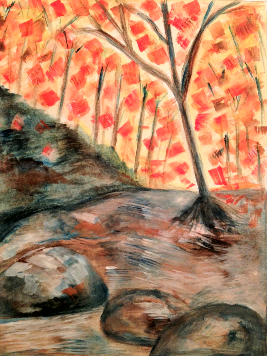 In response, Dina made this painting, “Rain, Damp Leaf-Scent”: